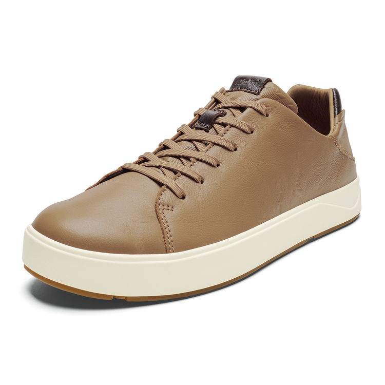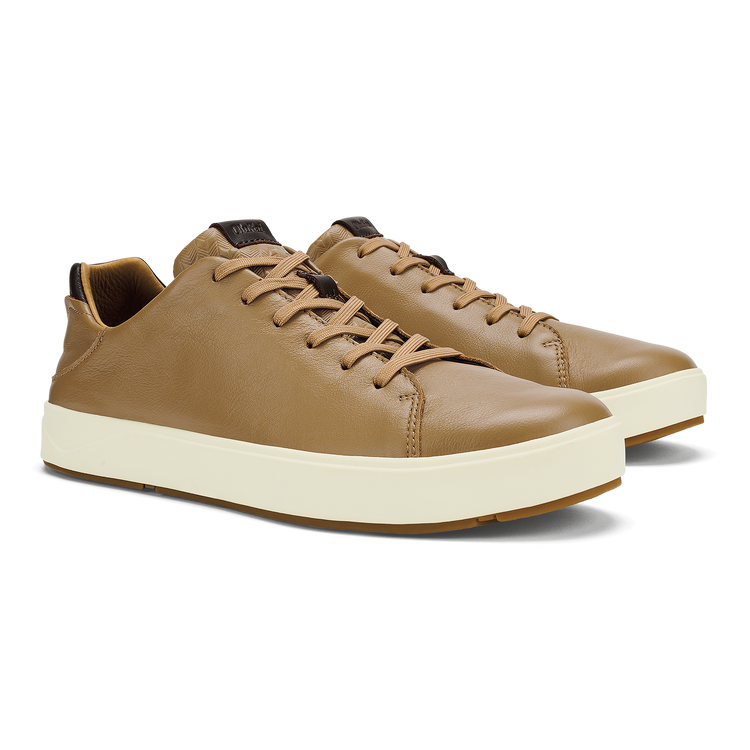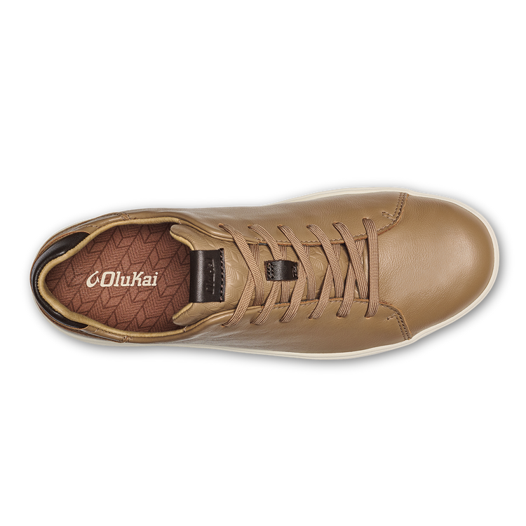 Made from premium full-grain waterproof leather, the Lae‘ahi Lī ‘Ili offers a blend of style and versatility with its natural color palette. The shoe is decorated with intricate debossed Hawaiian kapa artwork on the tongue, adding a touch of OluKai craftsmanship to its classic design.